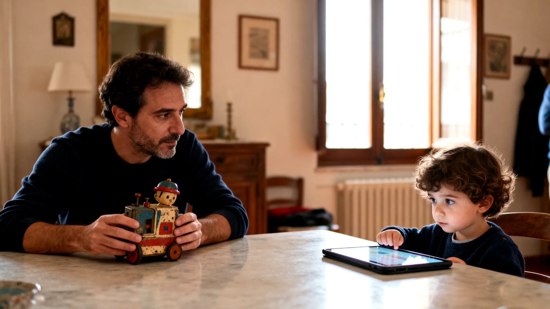 La maggior parte dei genitori affronta il divario generazionale oscillando tra due estremi, entrambi inefficaci. Il primo è la nostalgia imposta: “Ai miei tempi si giocava fuori tutto il giorno e stavamo benissimo.” Per quanto emotivamente comprensibile, suona al bambino come una critica velata al suo mondo. Il secondo è la resa digitale: rinunciare a trasmettere valori e abitudini perché “tanto i bambini di oggi sono fatti così.” Una delega silenziosa che genera vuoto educativo.